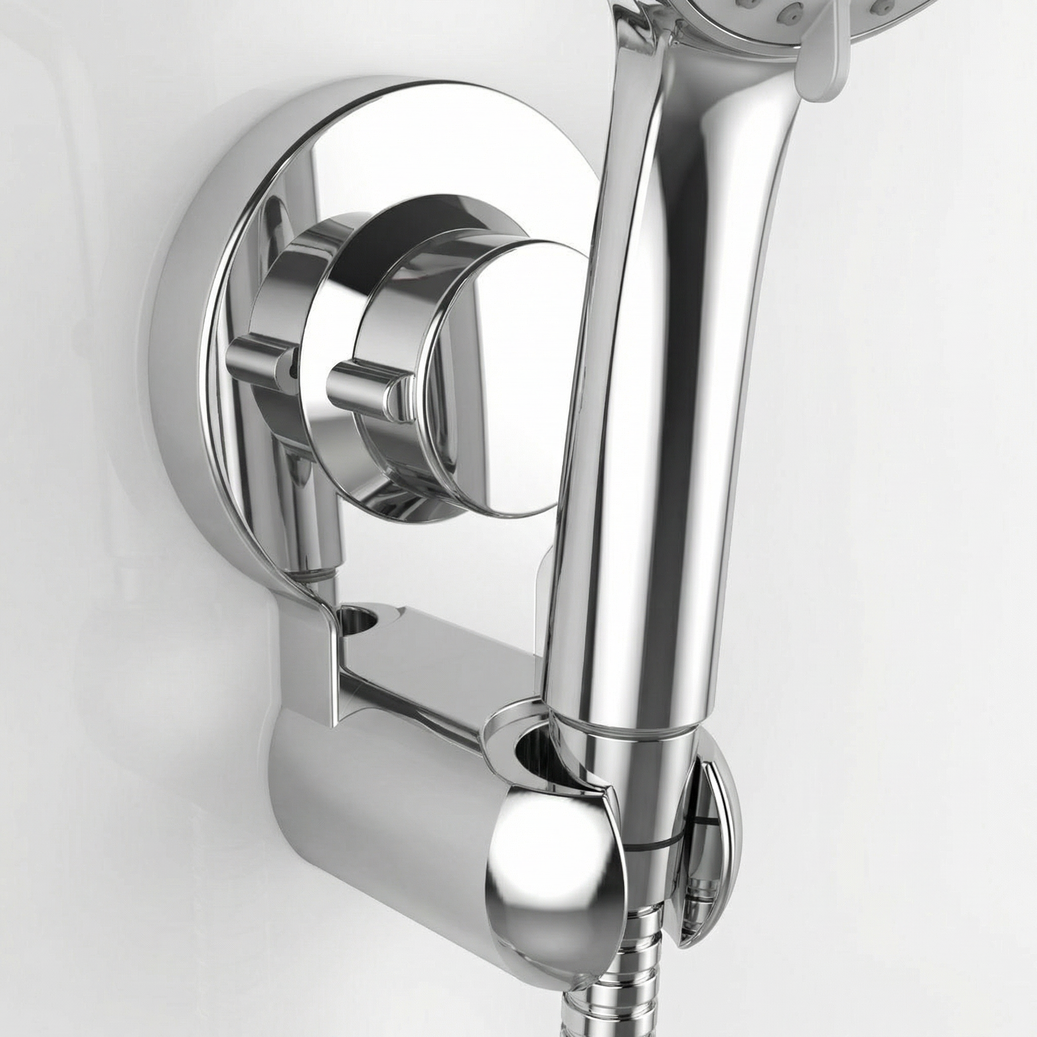 La altura perfecta para tu ducha, en segundos. Ajuste universal y máxima succión, instalados sin un solo agujero.
